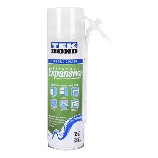 :: O adesivo TEKBOND ESPUMA EXPANSIVA é uma espuma adesiva, e seladora em aerossol a base de poliuretano.
