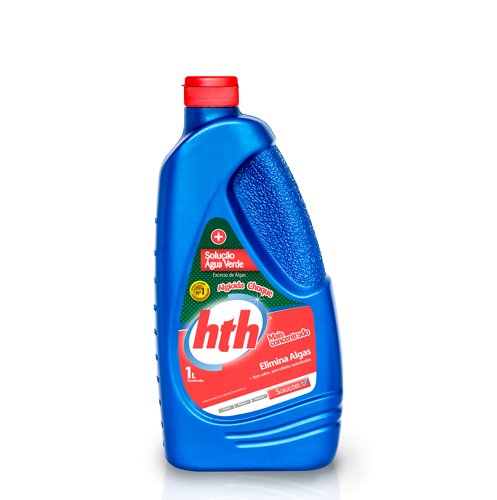 hth® Solução Água Verde – Algicida Choque um produto concentrado que elimina as algas de piscinas​ infestadas.​ Fórmula livre de cobre, não deixa manchas esverdeadas no cabelo​ e no revestimento.​