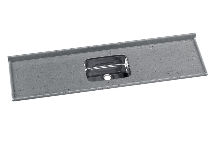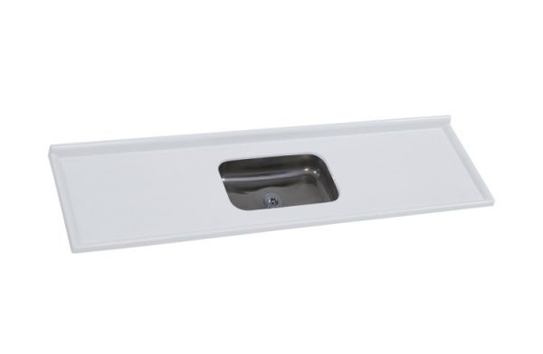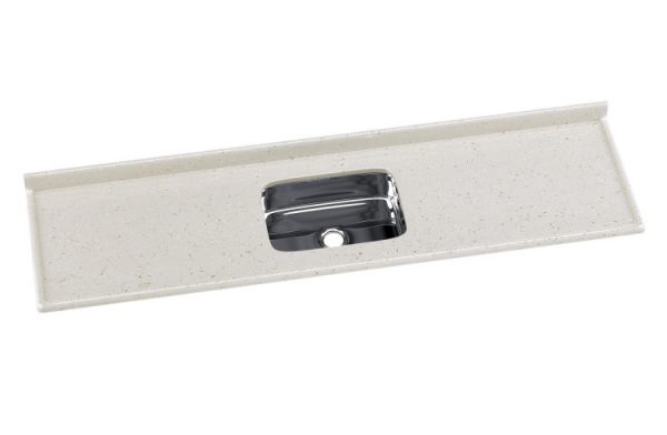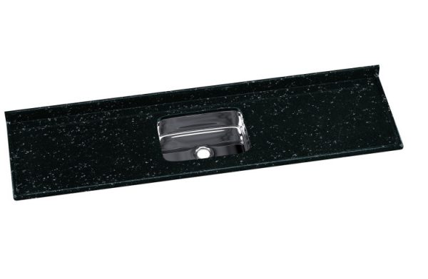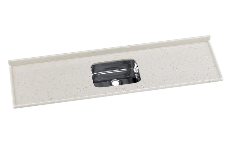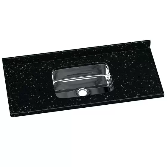 Produto em mármore sintético com espessuras reforçadas, com cobertura granitada de gel coat com brilho e resistência incomparáveis e cuba de aço Inox com 14cm de profundidade.